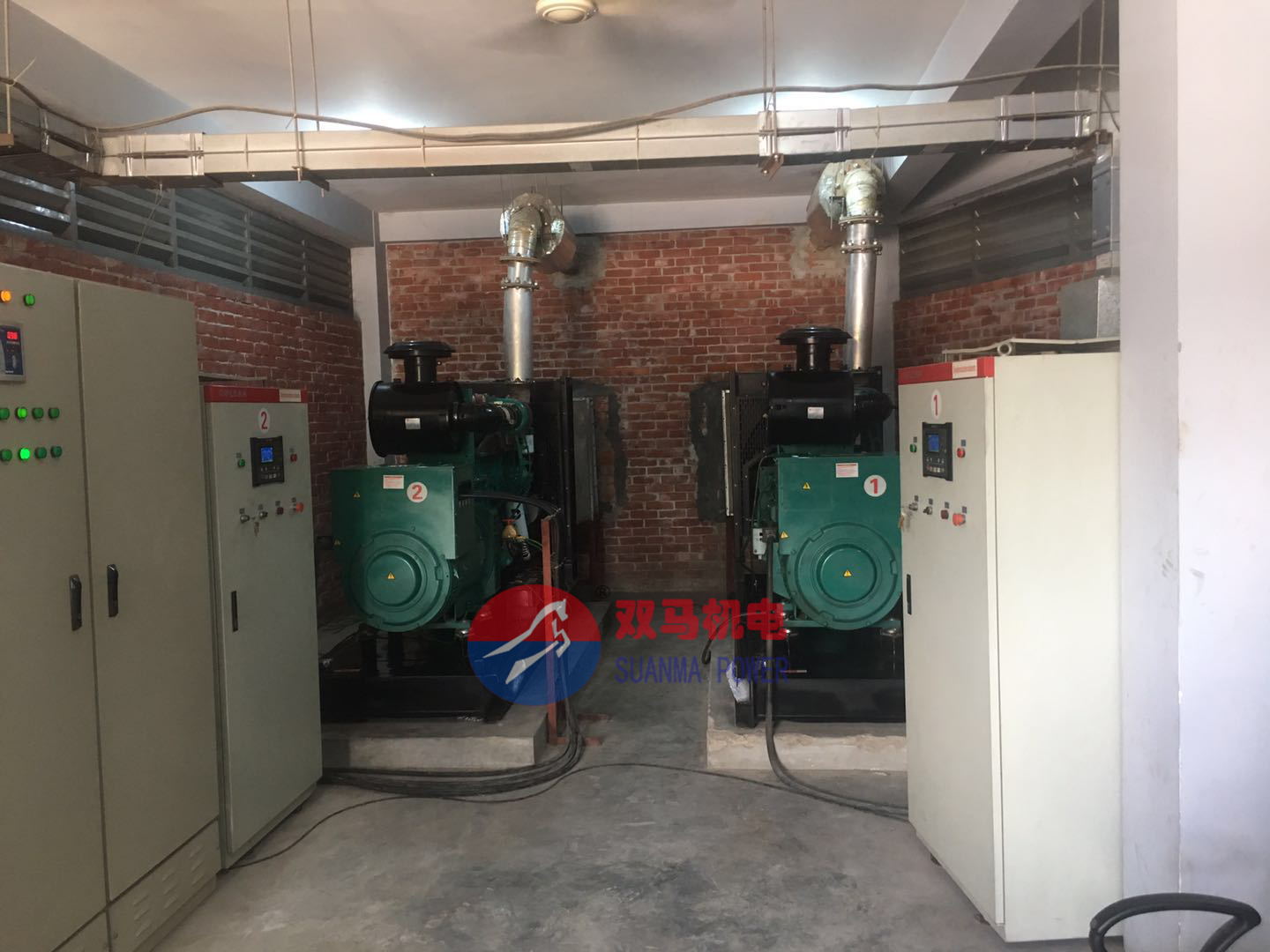 河北混泥土建材公司在我公司訂購的2臺康明斯柴油發電機,功率300KW發電機,采用全自動并機,柴油采用重慶康明斯NTA855-G4配套江蘇雙馬無刷全銅發電機SMI-300-4,此款康明斯柴油發電機按要求自帶大容量底座燃油箱,滿足客戶連續使用15小時,現柴油發電機安裝調試全部到位,得到用戶的一直認可,給出的評價是《做發電機組就的找專業的廠家》!